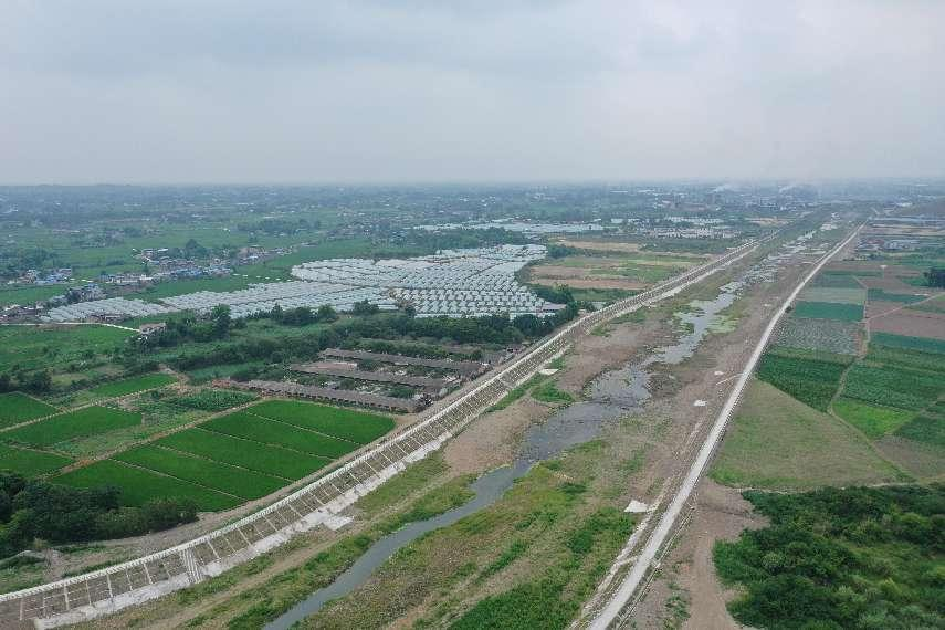 凱江塔水鎮(zhèn)裕豐段防洪治理工程建設內容包括綜合治理河道長度7km,新建堤防護岸3989m。其中左岸新建堤1160m、新建護岸1155m,右岸新建堤防408m、新建護岸1266m,堤型均采用生態(tài)斜坡式結構堤,新建排澇涵管15處(左岸8處,右岸7處),新建箱涵1處,新建梯步20處(左岸11處,右岸9處)。堤腳培厚800m(左右岸各400m),河道疏浚7000m。該項目建成后,使裕豐段河道流域形成完整的防洪體系,對促進塔水鎮(zhèn)、河清鎮(zhèn)產業(yè)升級和經濟社會發(fā)展及改善流域環(huán)境具有重要意義。